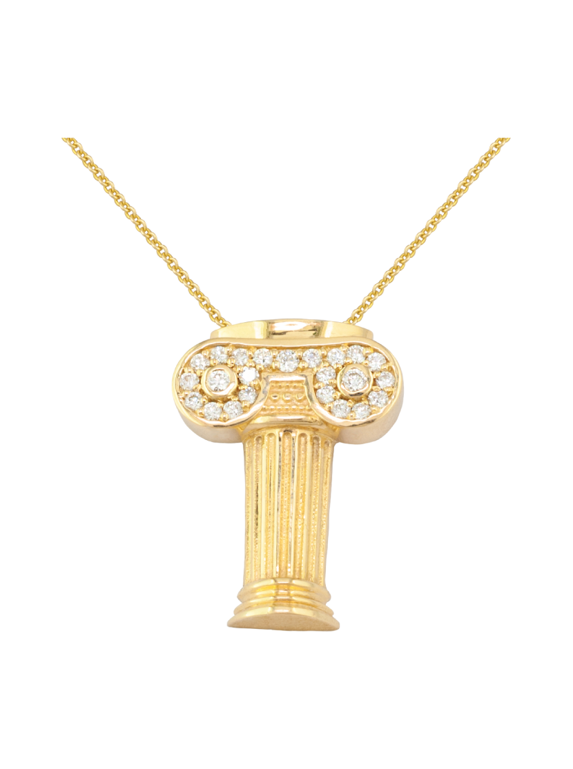 Crafted in gold and crowned with diamonds, this pendant draws from the Ionic column—an architectural form born in ancient Ionia, celebrated for its balanced proportions and graceful scrolls.